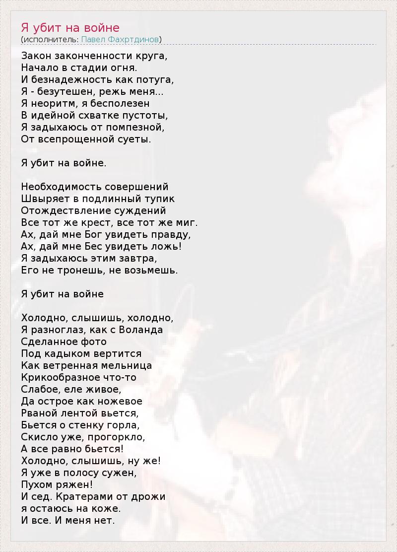 А как ты думаешь, о чем песня "Я убит на войне" ?