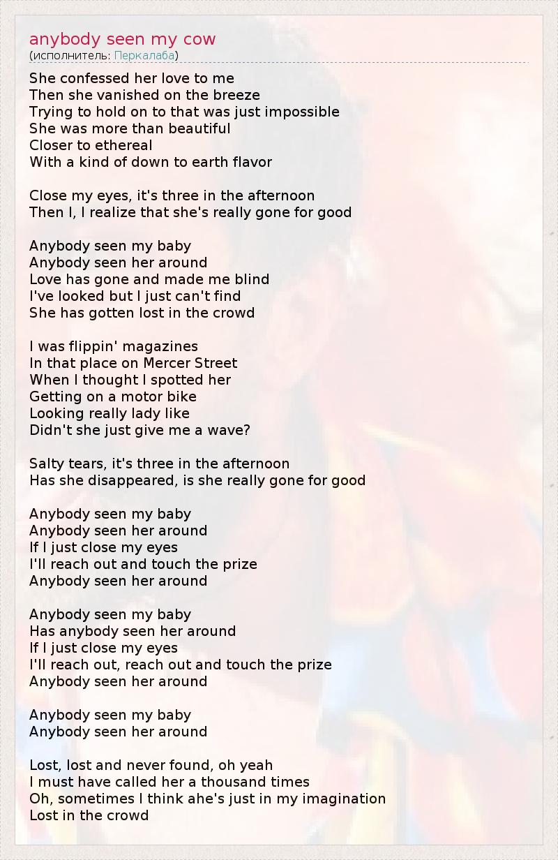 А как ты думаешь, о чем песня "anybody seen my cow" ?