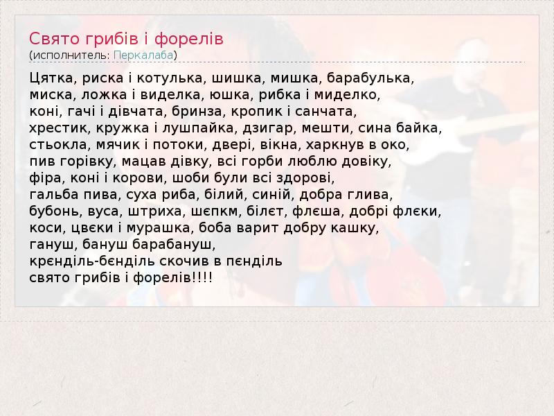 А как ты думаешь, о чем песня "Свято грибів і форелів" ?