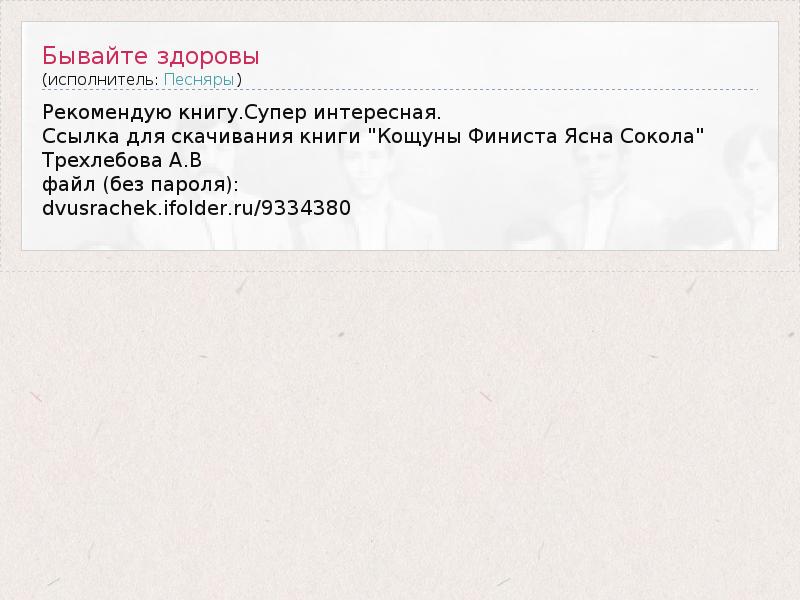 ГлавнаяИсполнителиПеснярыБывайте здоровы