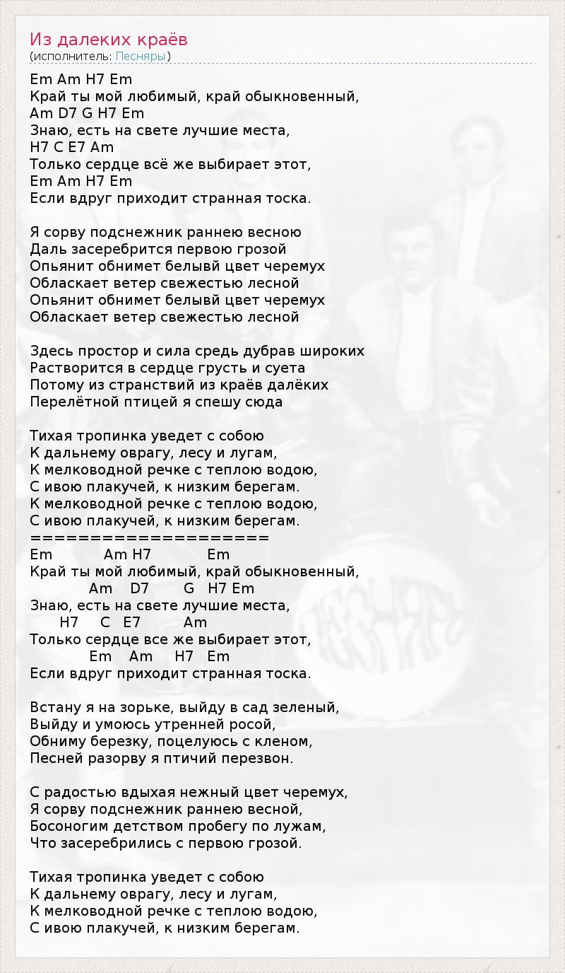 ГлавнаяИсполнителиПеснярыИз далеких краёв