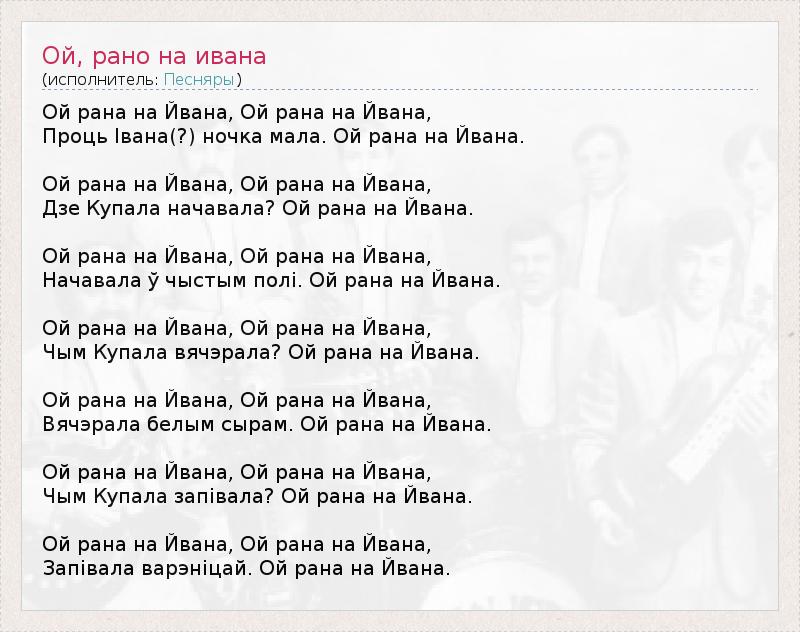 ГлавнаяИсполнителиПеснярыОй, рано на ивана