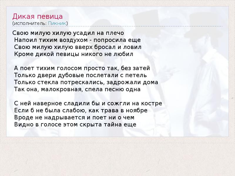 А как ты думаешь, о чем песня "Дикая певица" ?