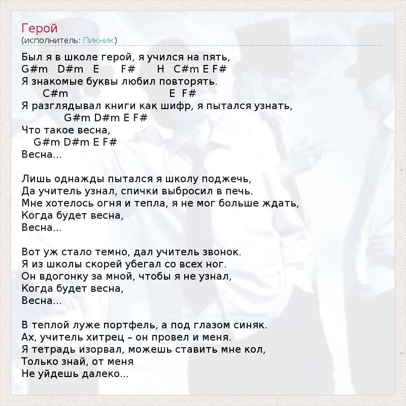 Был я в школе герой, я учился на пять,