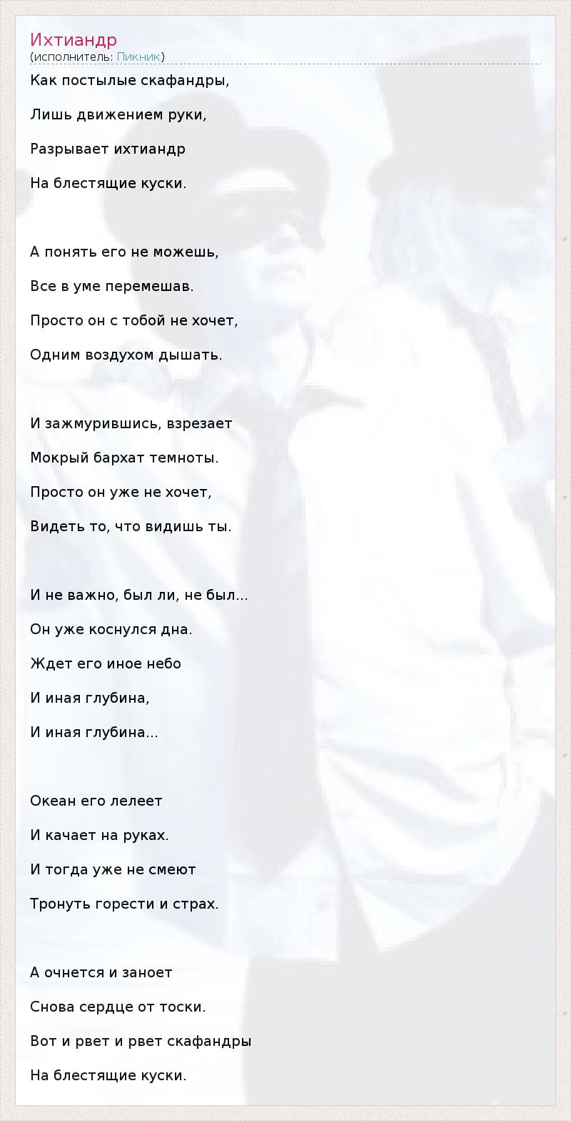А как ты думаешь, о чем песня "Ихтиандр" ?