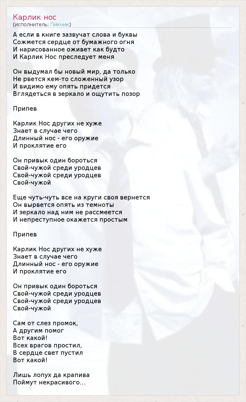 А как ты думаешь, о чем песня "Карлик нос" ?