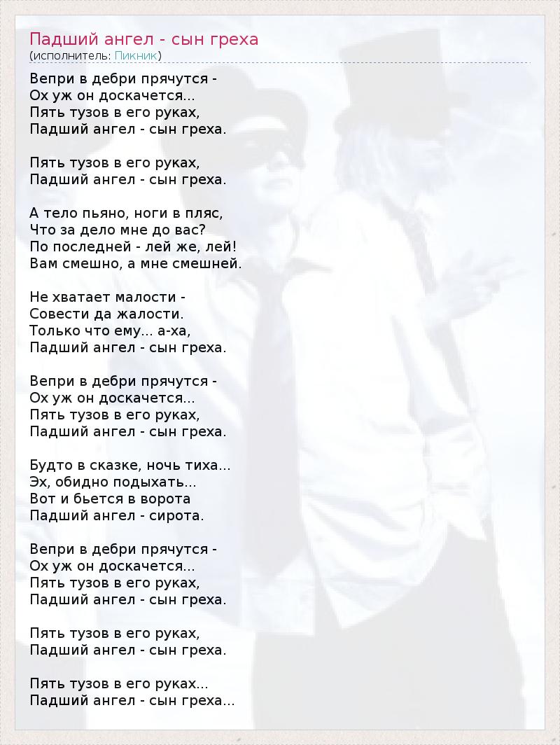 ГлавнаяИсполнителиПикникПадший ангел - сын греха