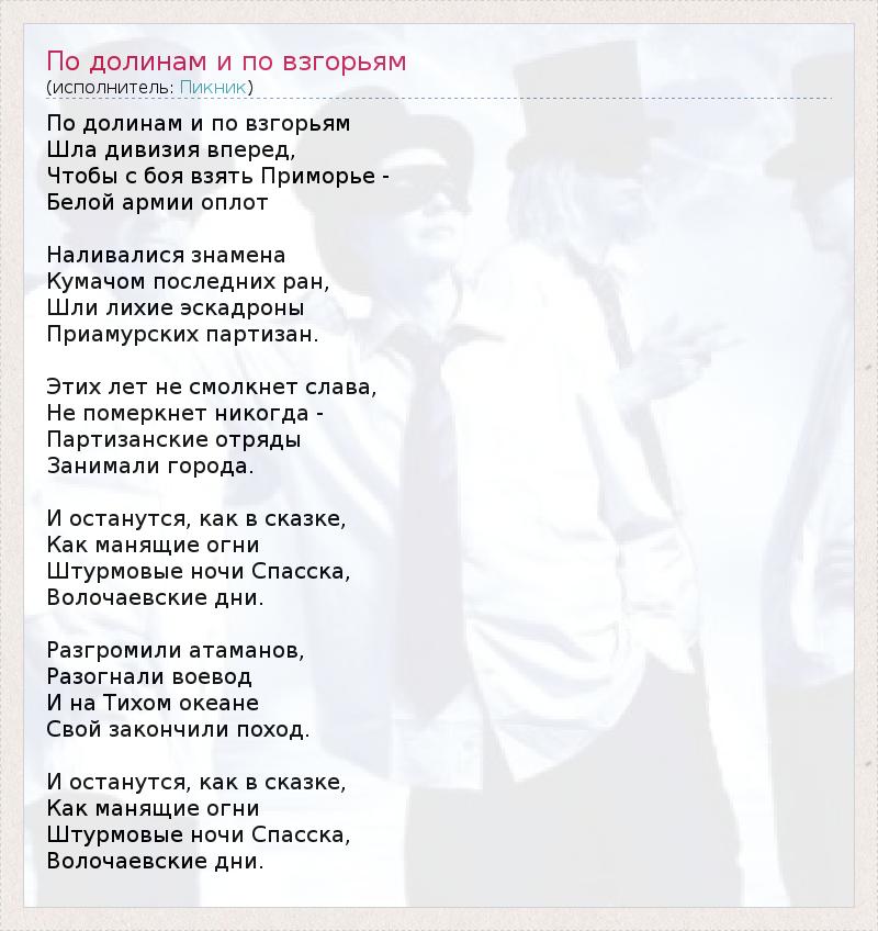 ГлавнаяИсполнителиПикникПо долинам и по взгорьям