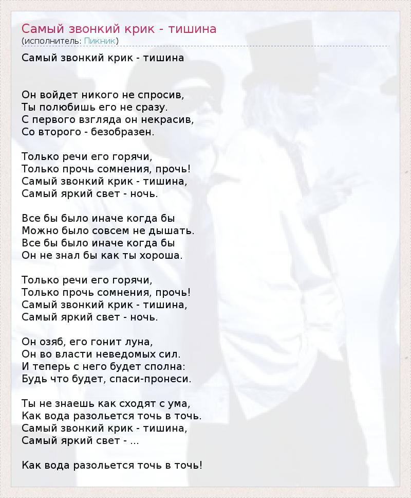 ГлавнаяИсполнителиПикникСамый звонкий крик - тишина