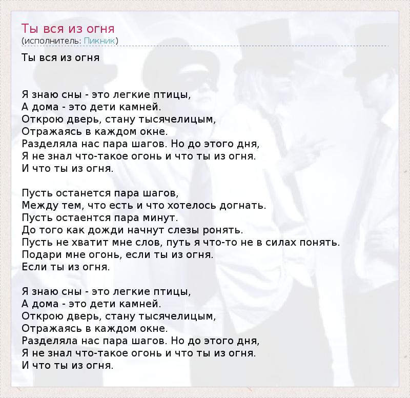 ГлавнаяИсполнителиПикникТы вся из огня