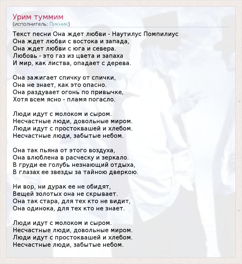 Текст песни Она ждет любви - Наутилус Помпилиус