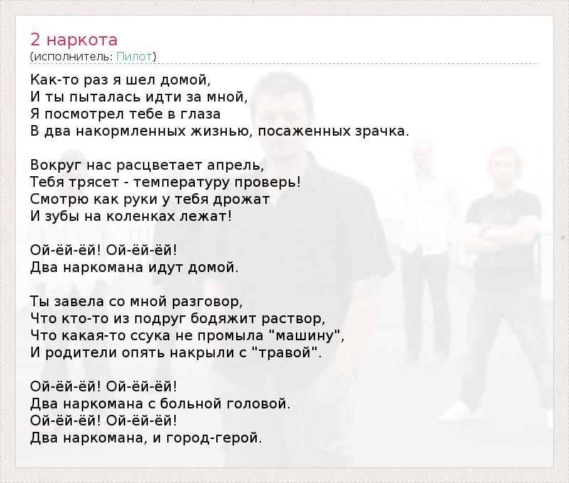 Это интересно:Группа "Пилот" образовалась 11 января 1997 года в первоначальном составе: Илья Чёрт (вокал), Ромка Чуйков (гитара), Стасики Маркофф (бас), Витя Кузьмичёв (барабаны) плюс комсостав в лице директора Карпенкова Валерия Константиновича. На дне рождения группы, который проходил в концертном зале Полигон, играли приглашенные дружественные коллективы... продолжение