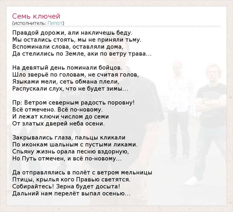 А как ты думаешь, о чем песня "Семь ключей" ?
