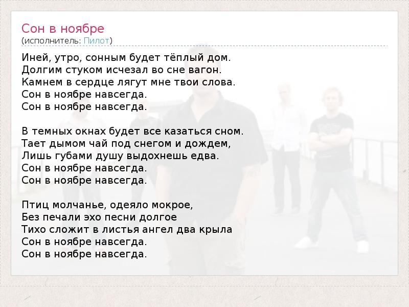 ГлавнаяИсполнителиПилотСон в ноябре