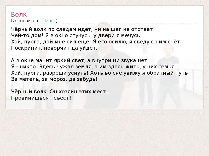 Чёрный волк по следам идет, ни на шаг не отстает!