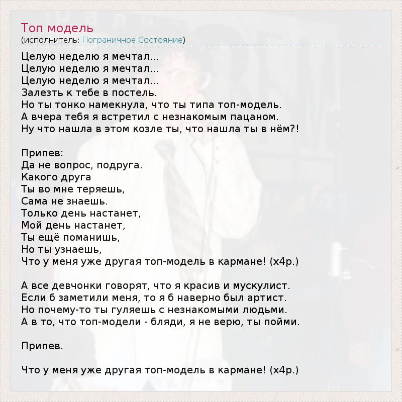 А как ты думаешь, о чем песня "Топ модель" ?