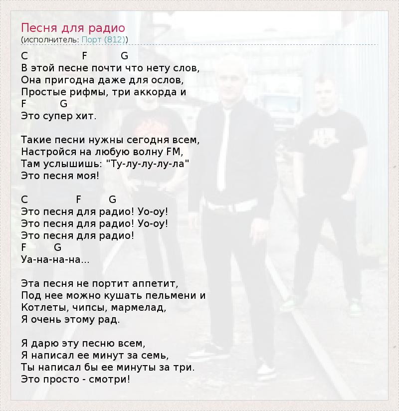 ГлавнаяИсполнителиПорт (812)Песня для радио