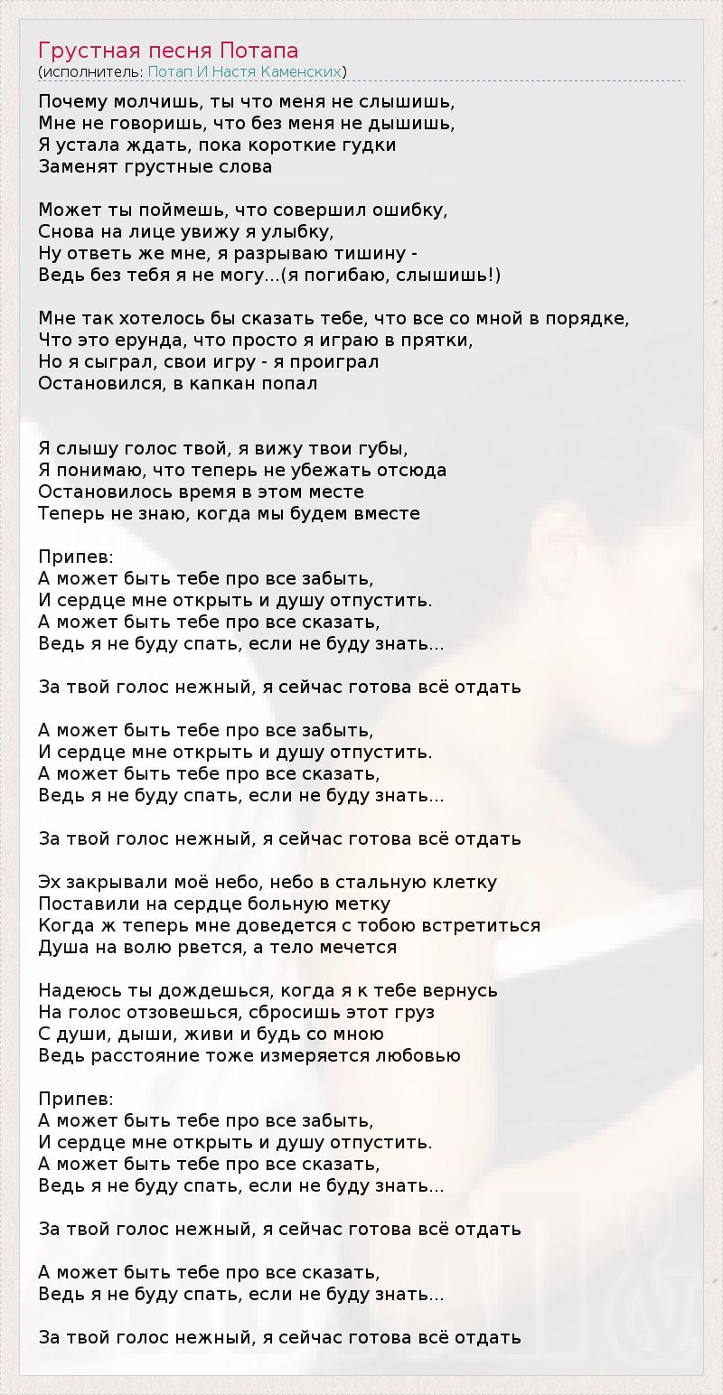 А как ты думаешь, о чем песня "Грустная песня Потапа" ?