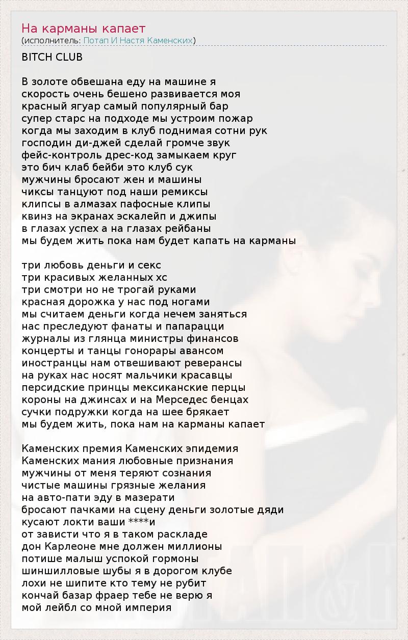 А как ты думаешь, о чем песня "На карманы капает" ?