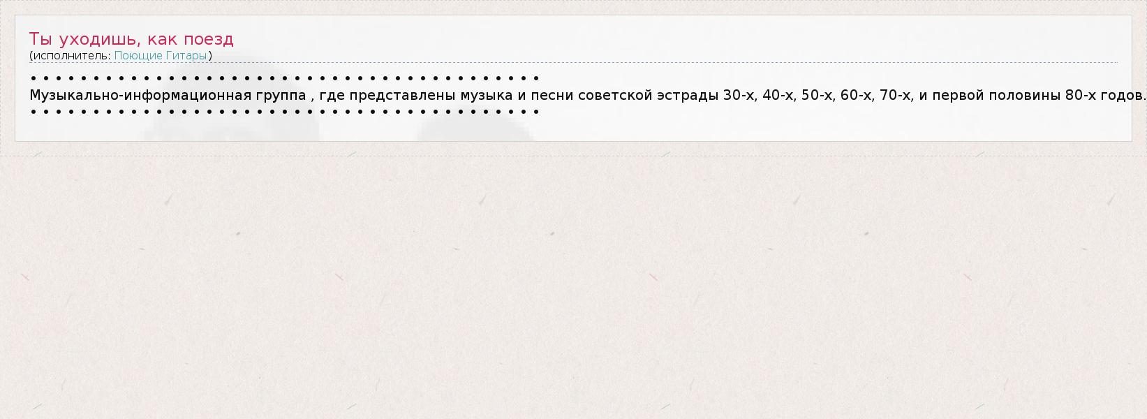 Musical- information group , which presents music and songs of the Soviet music 30s, 40s, 50s , 60s , 70s , and early 80s .
