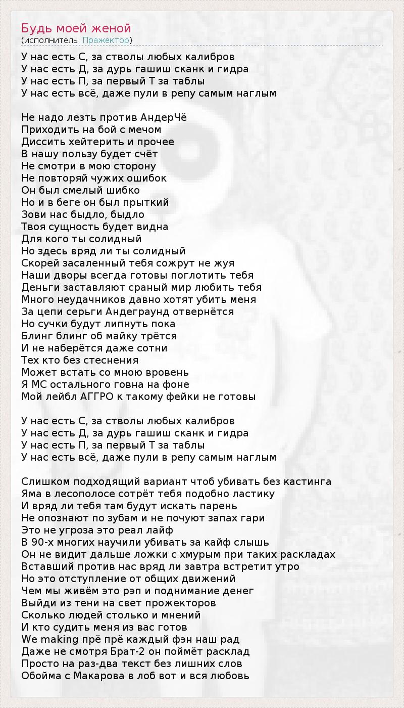 ГлавнаяИсполнителиПражекторБудь моей женой