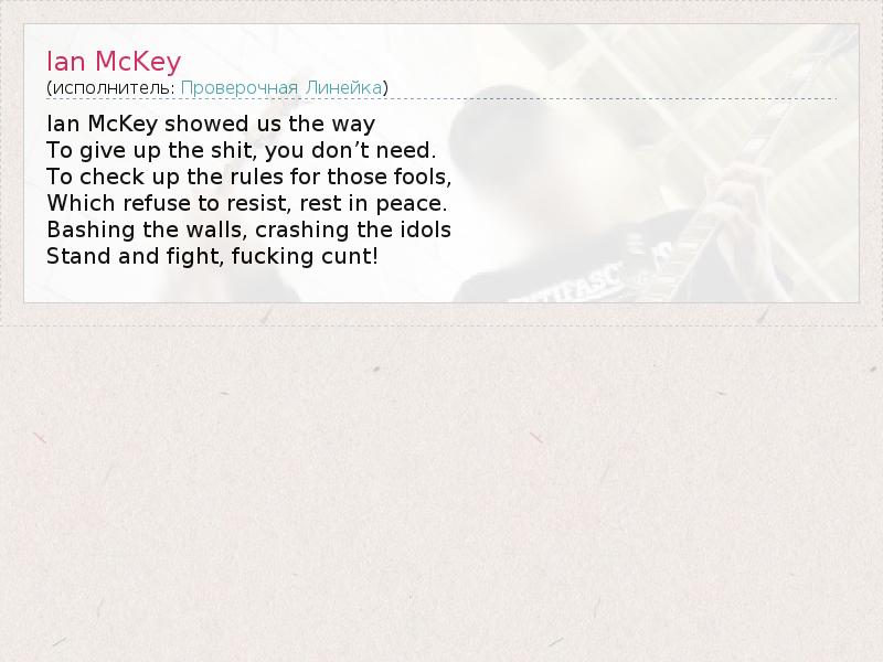 А как ты думаешь, о чем песня "Ian McKey" ?