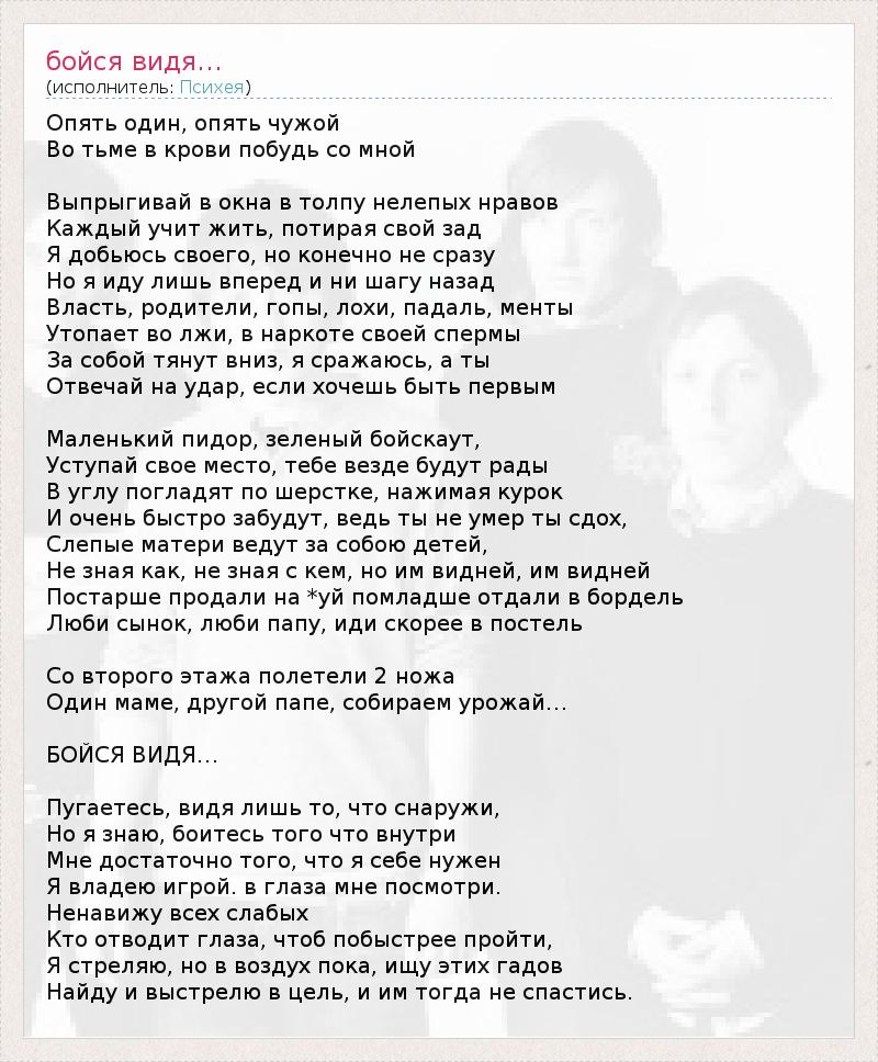 А как ты думаешь, о чем песня "бойся видя..." ?