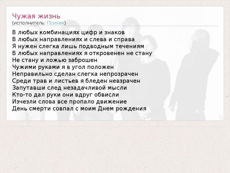 А как ты думаешь, о чем песня "Чужая жизнь" ?