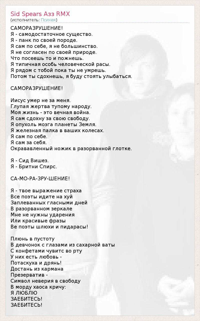 А как ты думаешь, о чем песня "Sid Spears Азз RMX" ?