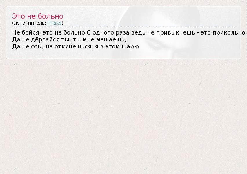 Не бойся, это не больно,С одного раза ведь не привыкнешь - это прикольно.