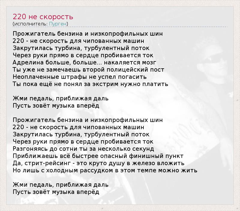 А как ты думаешь, о чем песня "220 не скорость" ?