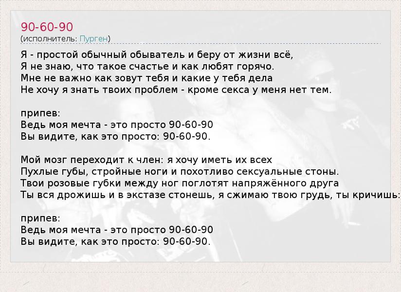 А как ты думаешь, о чем песня "90-60-90" ?