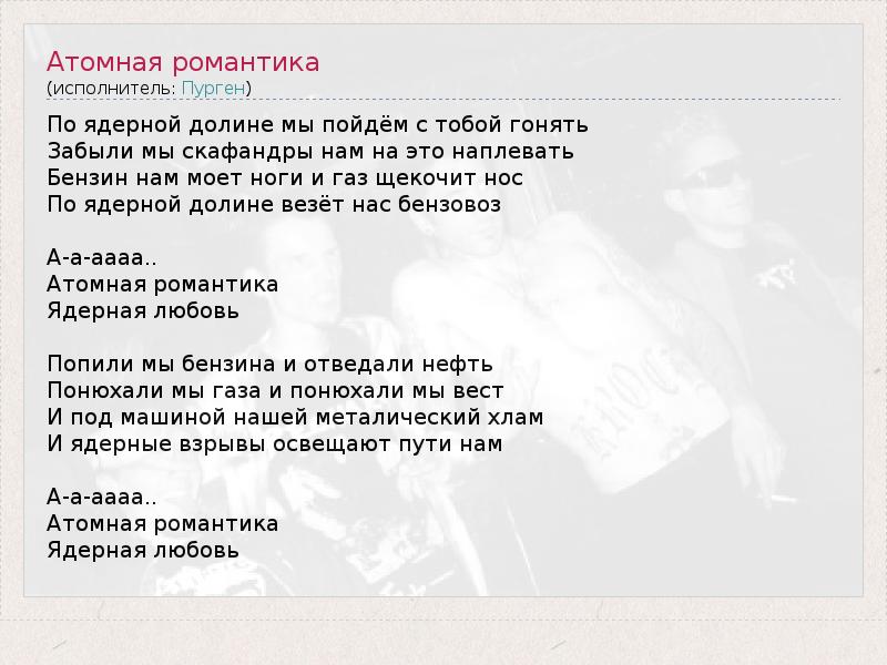 А как ты думаешь, о чем песня "Атомная романтика" ?