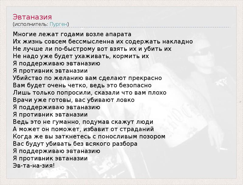 А как ты думаешь, о чем песня "Эвтаназия" ?