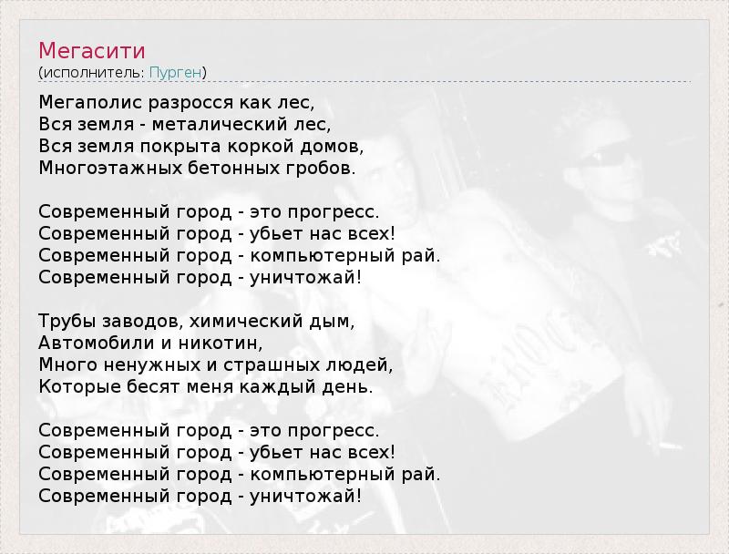 А как ты думаешь, о чем песня "Мегасити" ?