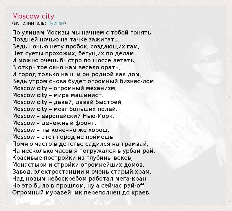 Это интересно:Пурген (Purgen, ПУRGЕН) — московская музыкальная группа, играющая в стиле панк, а затем в стиле хардкор-панк, а теперь по словам Руслана в стиле - Панк-Треш-Нео-Краст-Хардкор. Образована в 1989 году. Солист и бессменный лидер Руслан «Пурген» Гвоздёв. В клипе Moscow City(вместе с Русланом снялась его старая подруга Настя Денисова,бэк вокал в песне также ее)клип представлен к просмотруИдея рождения... продолжение