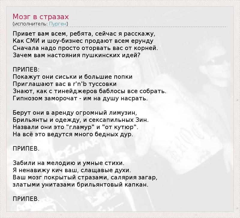 А как ты думаешь, о чем песня "Мозг в стразах" ?