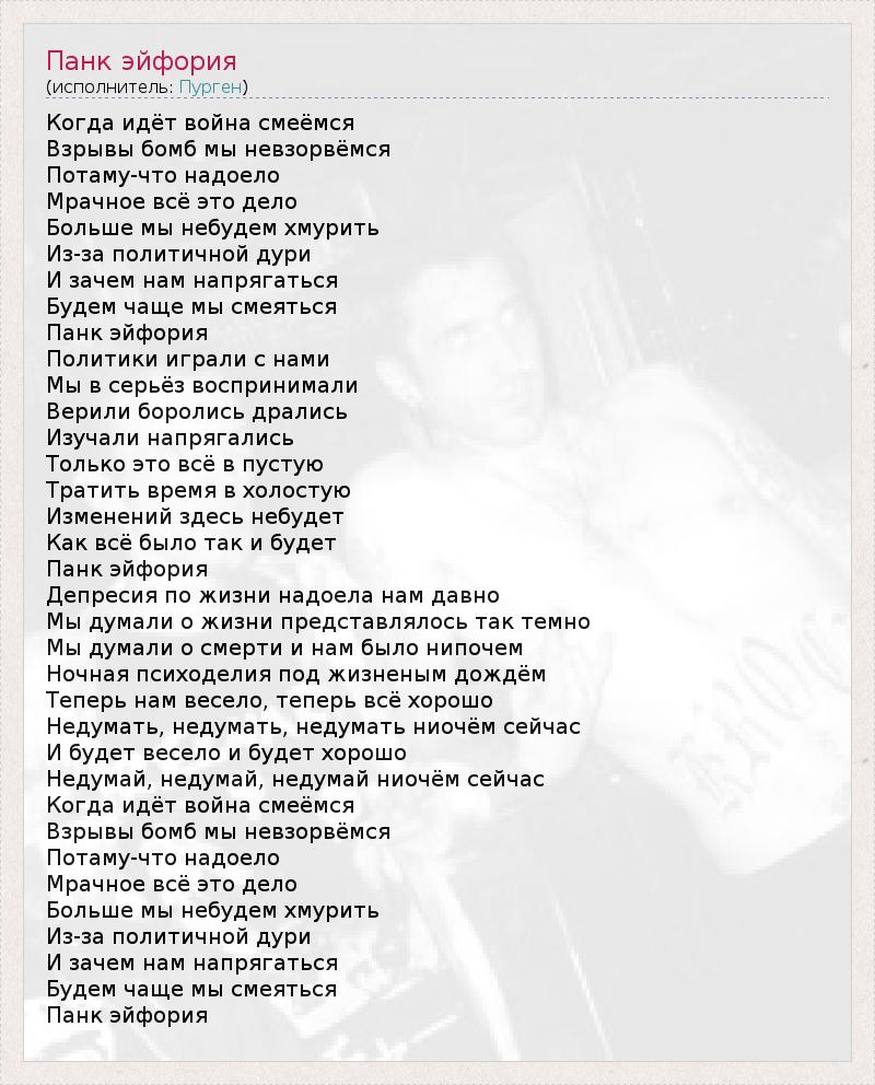 А как ты думаешь, о чем песня "Панк эйфория" ?