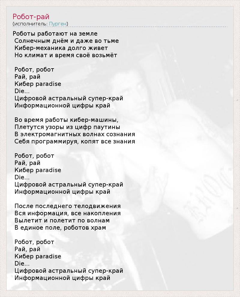 А как ты думаешь, о чем песня "Робот-рай" ?