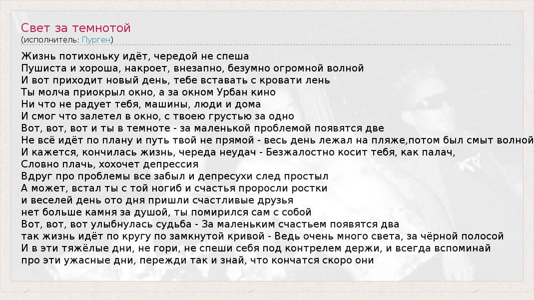 ГлавнаяИсполнителиПургенСвет за темнотой