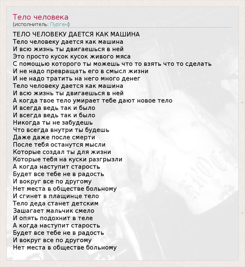 ТЕЛО ЧЕЛОВЕКУ ДАЕТСЯ КАК МАШИНА