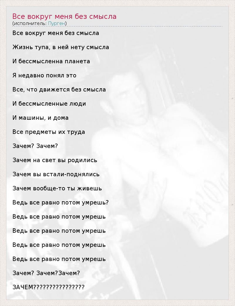 ГлавнаяИсполнителиПургенВсе вокруг меня без смысла