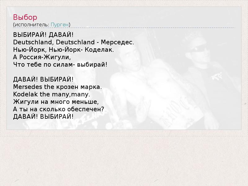 Это интересно:Пурген (Purgen, ПУRGЕН) — московская музыкальная группа, играющая в стиле панк, а затем в стиле хардкор-панк, а теперь по словам Руслана в стиле - Панк-Треш-Нео-Краст-Хардкор. Образована в 1989 году. Солист и бессменный лидер Руслан «Пурген» Гвоздёв. В клипе Moscow City(вместе с Русланом снялась его старая подруга Настя Денисова,бэк вокал в песне также ее)клип представлен к просмотруИдея рождения... продолжение