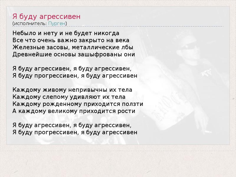 ГлавнаяИсполнителиПургенЯ буду агрессивен