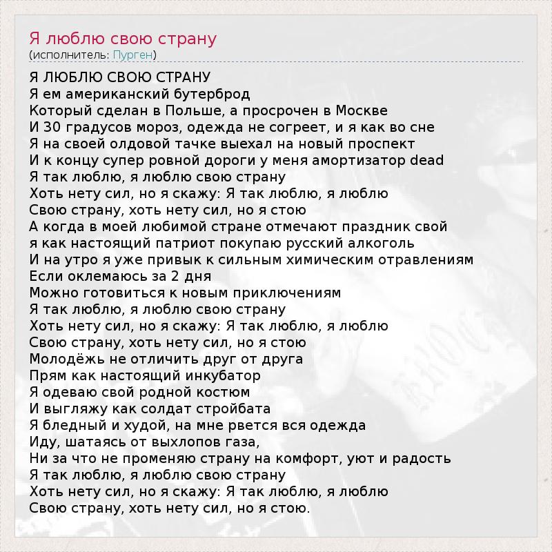 ГлавнаяИсполнителиПургенЯ люблю свою страну