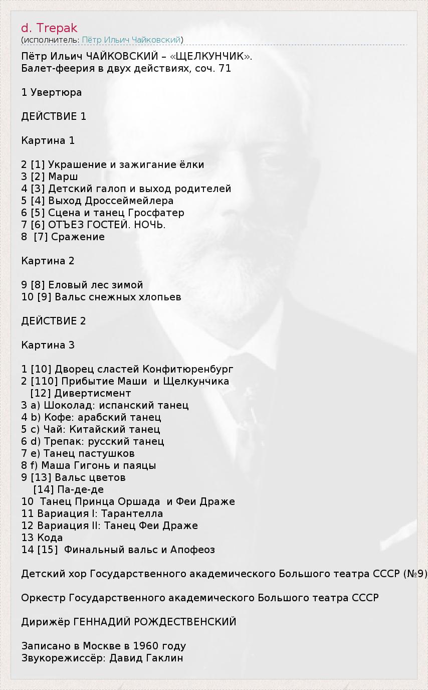 Пётр Ильич ЧАЙКОВСКИЙ – «ЩЕЛКУНЧИК».
