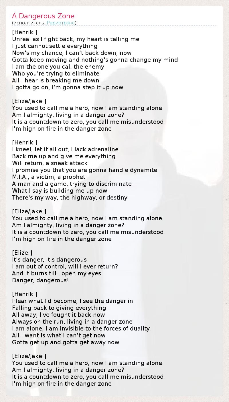 А как ты думаешь, о чем песня "A Dangerous Zone" ?