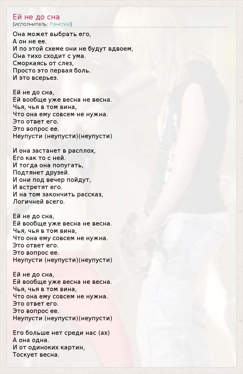 А как ты думаешь, о чем песня "Ей не до сна" ?