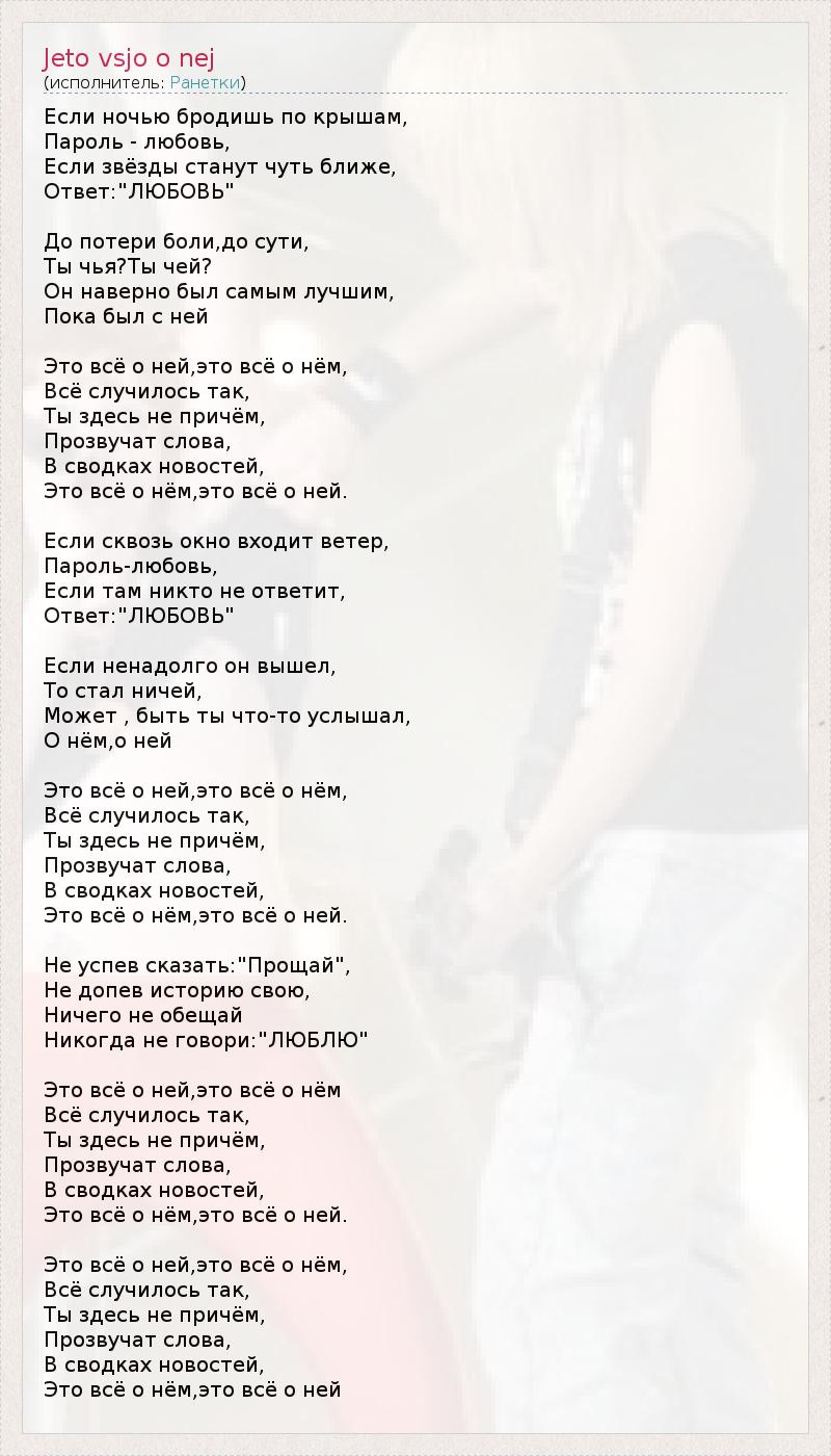 А как ты думаешь, о чем песня "Jeto vsjo o nej" ?