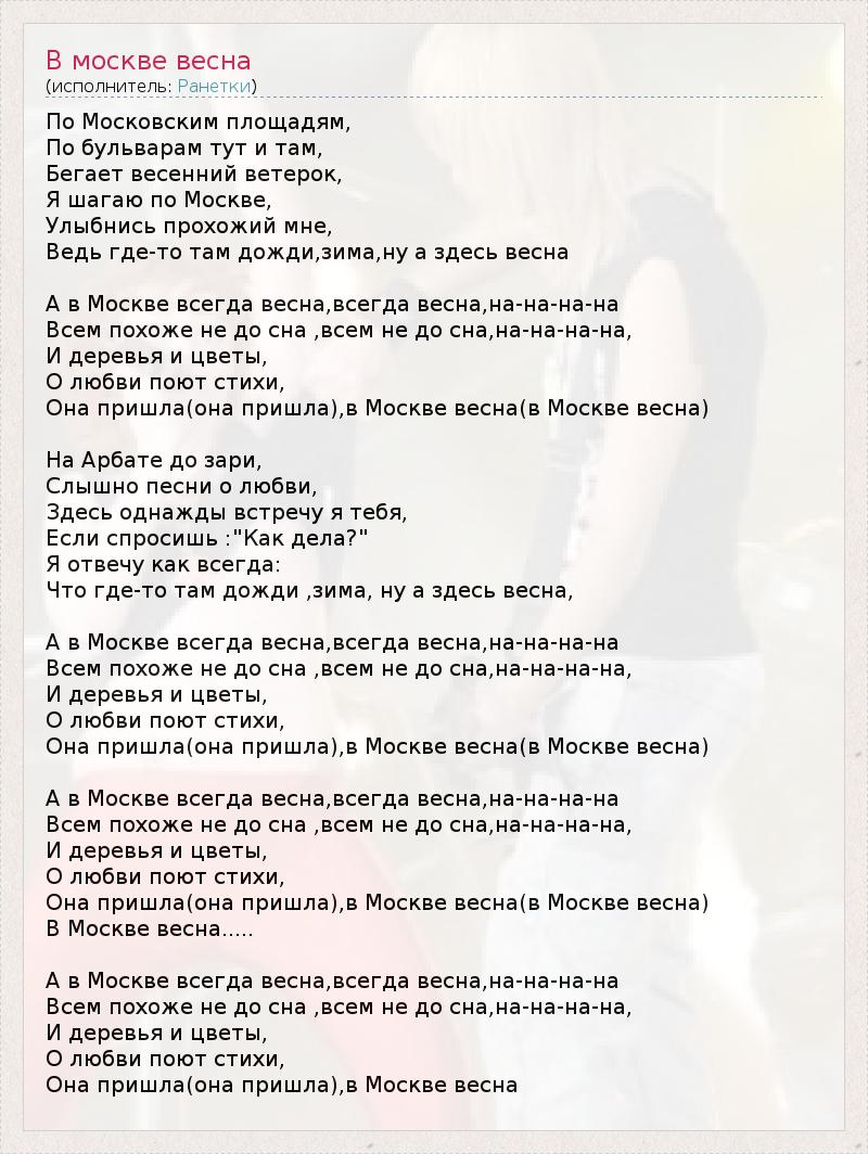 ГлавнаяИсполнителиРанеткиВ москве весна